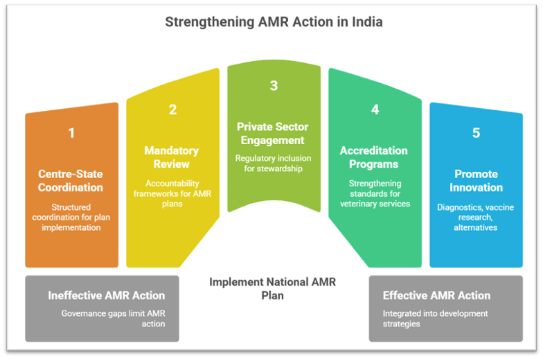 • The new National Action Plan on AMR (2025–29), which introduces national oversight and emphasises State AMR Cells, attempts to address these governance gaps.