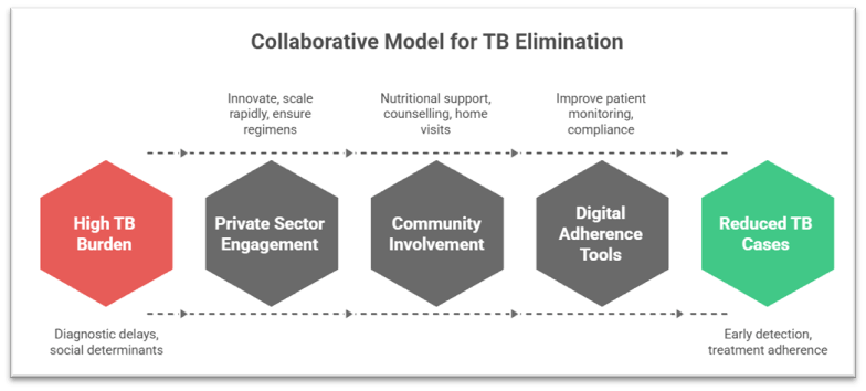 . Urban TB transmission, especially in slums, demands stronger partnerships with municipal bodies, resident welfare associations, and urban primary healthcare networks.