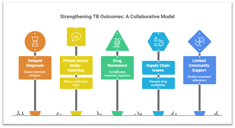. Unregulated private prescriptions and irrational use of antibiotics persist in some areas, undermining TB elimination efforts. Strengthening standard treatment protocols through collaborative regulatory mechanisms is essential.