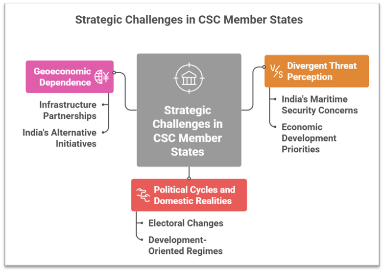 Domestic uncertainties (in Bangladesh or Maldives) can derail continuity, undermining India’s objective of using CSC as a core Indo-Pacific subregional security pillar.