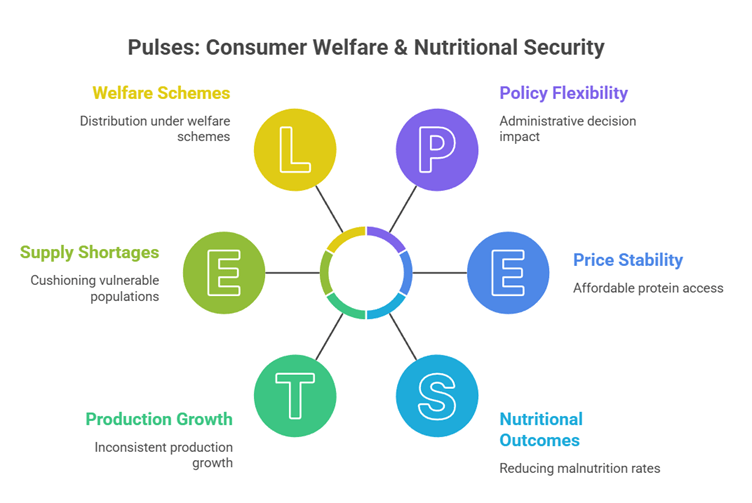 • Example – Distribution under welfare schemes: Pulses have been periodically distributed at subsidised rates through the Public Distribution System in selected States, cushioning vulnerable populations during high-price phases.