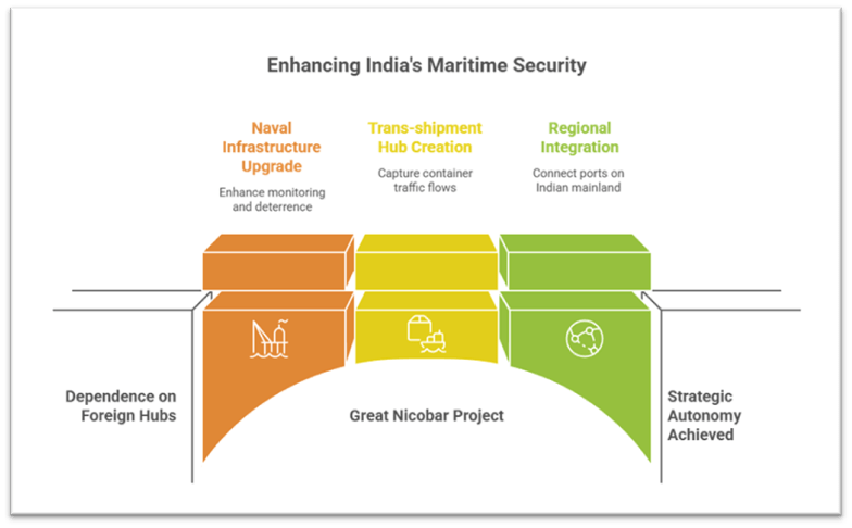 • The project proposes a naval-capable deep-water port, upgraded airfield and surveillance infrastructure — enhancing India’s ability to monitor sea-lanes in the eastern Indian Ocean, deter hostile presence and strengthen maritime domain awareness.