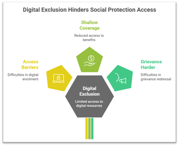 - The promise of portable social protection (health, pension, maternity) hinges on digital enrolment, but if large numbers remain excluded, universality is undermined.