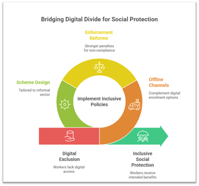 - Digital portals may be built and the law may require contributions, but if a worker lacks digital access and the employer evades contributions because of weak inspection, the worker falls through the net.