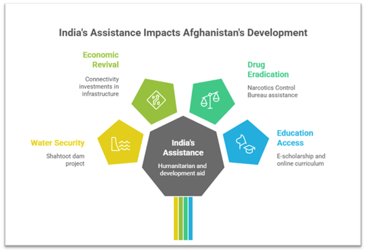 India’s strength in Afghanistan over 2001–2021 lay in visible infrastructure and people-to-people goodwill. Projects like the Shahtoot Dam and connectivity initiatives can revive Afghanistan’s local economies. In the current context, relief in food, healthcare, education, and welfare serves as the foundation for engagement.