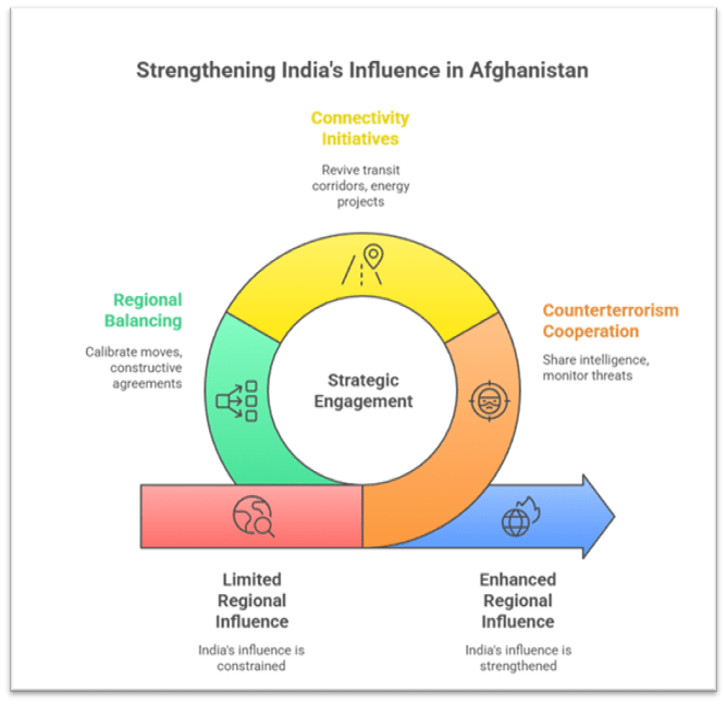India must balance its engagement to avoid provoking Pakistan while leveraging current tensions between Islamabad and Kabul. Deeper engagement will also counter China’s growing influence through the Belt and Road Initiative (BRI) and mining investments.