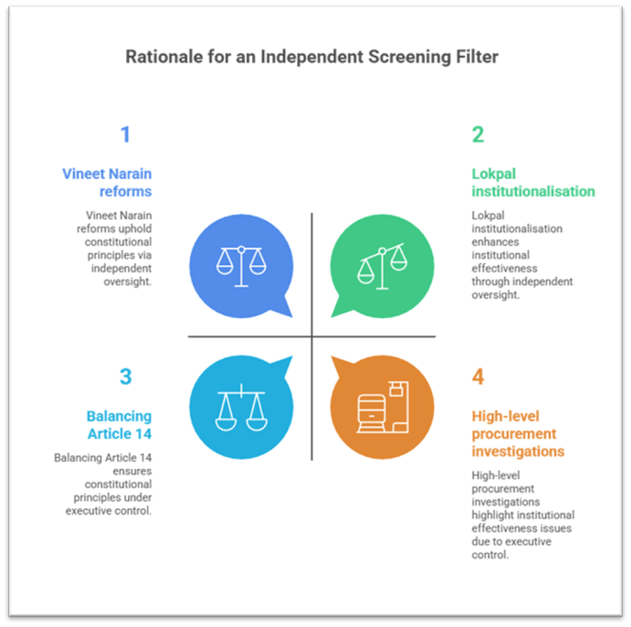 Within this context, the proposal to use independent screening bodies such as the Lokpal as a “constitutional filter” before initiating corruption probes seeks to address a long-standing tension: safeguarding honest decision-making while ensuring investigative autonomy free from executive interference.