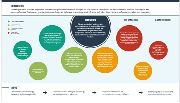 Loss and damage, technology transfer, and just transition persist as aspirational pillars because they challenge the core political economy of climate governance — raising questions of who pays, who benefits, and who bears risk.