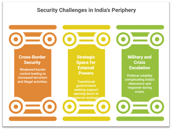 - Political volatility in neighbouring states increases uncertainty during crises, complicating India’s deterrence and response calculations.