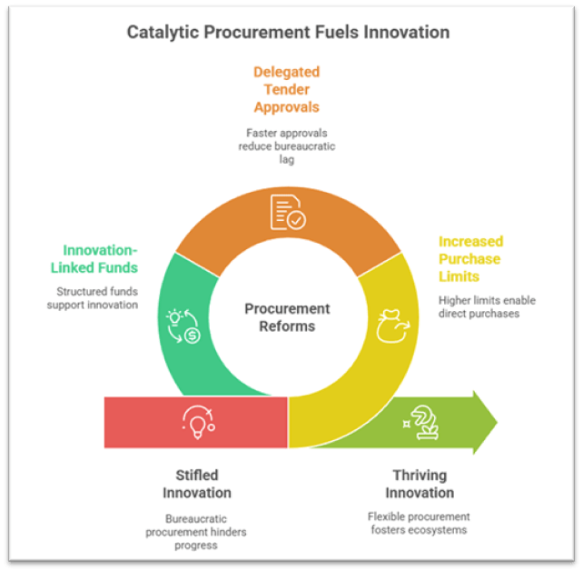 Moving forward, India must integrate outcome-based evaluation, AI-assisted procurement, sandbox exemptions for premier institutions, and collaborative alliances. With procurement accounting for nearly one-fifth of India’s GDP, even marginal improvements can have a multiplier effect on innovation. If implemented effectively, procurement can transform India’s public sector into an innovation catalyst, helping the nation achieve its aspiration of becoming a global R&D hub.