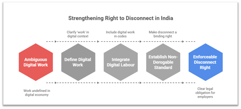 The Right to Disconnect Bill, 2025 acknowledges a critical transformation in the nature of work, where digital technologies have collapsed the boundary between labour and leisure. However, without integrating digital engagement into the legal understanding of working time and employer control, the right risks remaining a symbolic norm rather than an enforceable guarantee.
