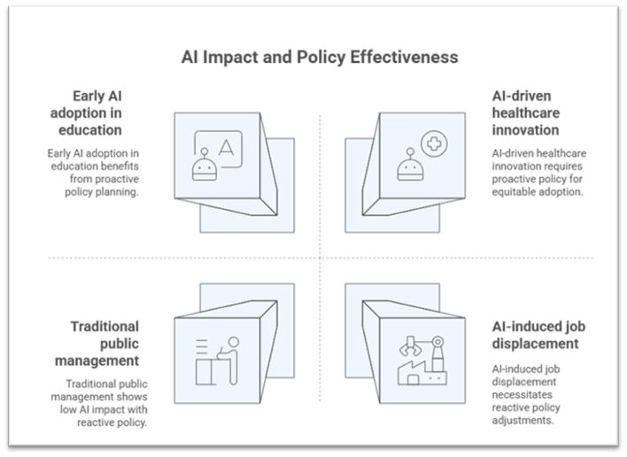 Evaluating the role of public policy shows that it is central to preventing prolonged wage stagnation and inequality during AI-led transitions, but its effectiveness depends on speed, design, and political will. On the positive side, skilling initiatives, redistributive mechanisms, and AI infrastructure as public goods can democratise benefits, while stronger labour institutions safeguard fair wages. On the negative side, policy lag, unequal global distribution, rising reskilling costs, and weak welfare mechanisms threaten to prolong inequality. Neutral outcomes suggest that AI may still deliver consumer welfare benefits but with uneven labour market impacts.