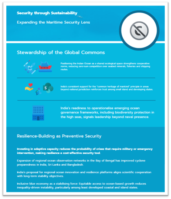 The shift from traditional maritime security to security through sustainability reflects a pragmatic recognition that environmental degradation, climate change and livelihood insecurity are now among the most potent drivers of instability in the Indian Ocean Region.