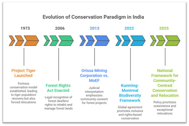 - The Union Ministry of Tribal Affairs now plays a larger role alongside the Ministry of Environment, Forest and Climate Change (MoEFCC), ensuring that conservation policies align with rights-based governance.
