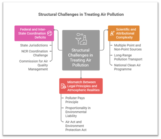 - Air pollution transcends State boundaries, but India’s federal structure places pollution control primarily within State jurisdictions, often resulting in fragmented enforcement.
