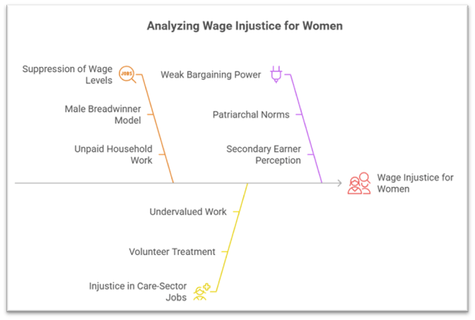 - Example: Agricultural sector women labourers (NSSO data 2022) earn 20–30% less than men for the same work, partly due to this undervaluation.