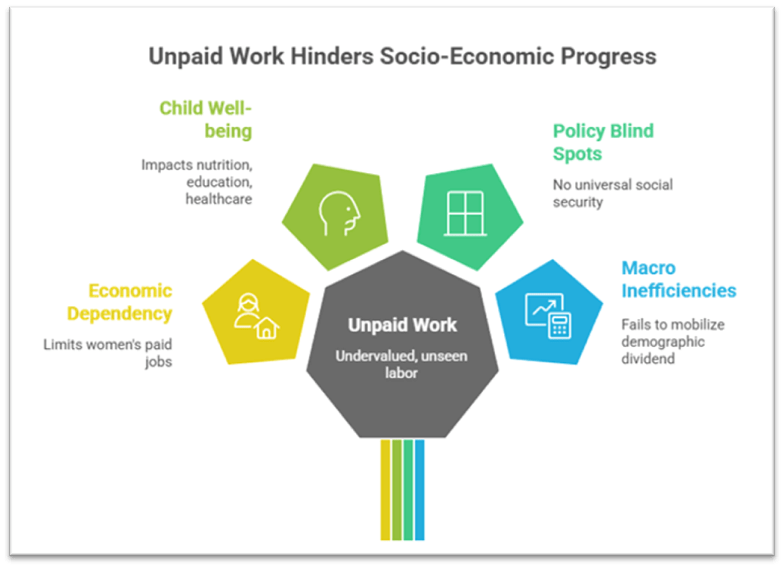 Only by integrating unpaid care work into the formal economic framework can India move towards a gender-just and inclusive growth trajectory, ensuring both women’s dignity and economic efficiency.